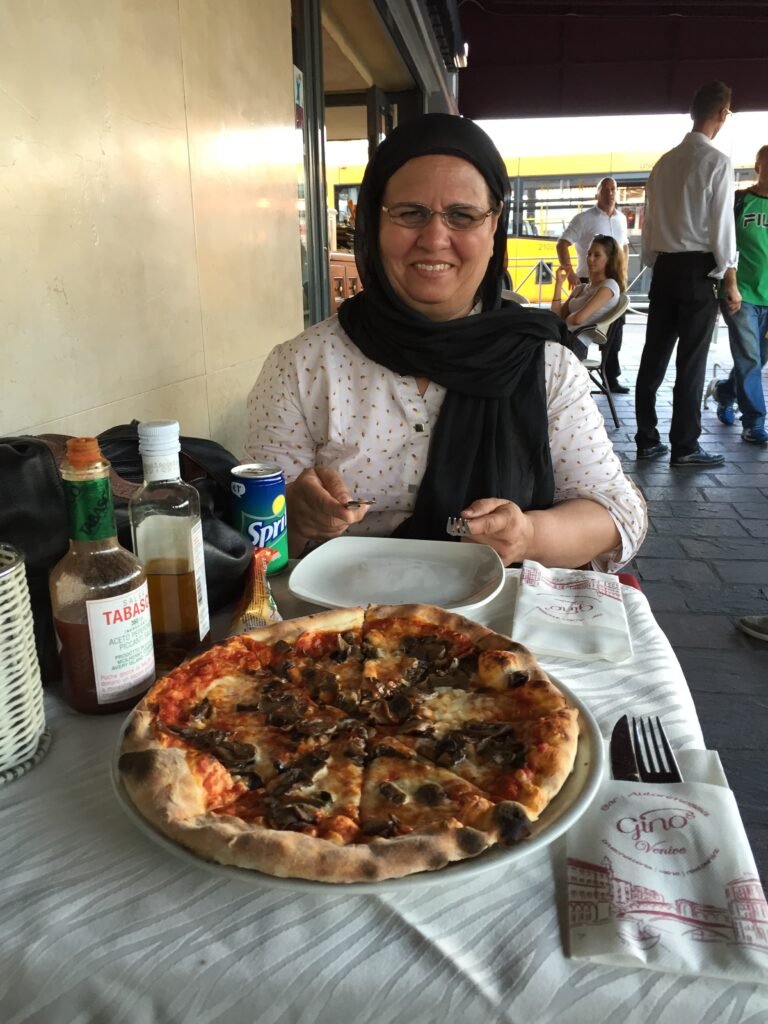 To celebrate, we enjoyed pizza at Piazza San Marco. When the bill arrived, we noticed an additional four euros. The waiter politely explained that it was a two-euro-per-person table service charge. We then understood why many visitors opted for takeaway meals enjoyed in nearby open spaces.